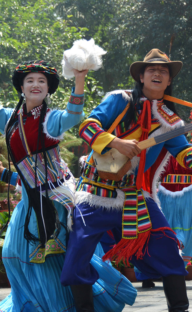 云南省境內(nèi)的藏族人口約12萬,主要聚居在云南迪慶藏族自治州,少量散居于麗江、貢山、永勝、寧蒗等縣。藏族信奉藏傳佛教,白色被藏族視為純潔神圣的象征。藏族村占地21畝,村內(nèi)有大小中甸地區(qū)的坡頂民居和德欽地區(qū)的雕樓式平頂民居。莊嚴神圣的藏傳佛寺,壯觀的迎賓白塔,象征吉祥和睦的“白牦牛”雕塑與獨具風格的藏式建筑互為映襯,相得益彰。藏族主要節(jié)日有:藏歷年、丹巴日古(七月夏游節(jié))、昂曲節(jié)、格冬節(jié)等;主要禮節(jié)是...